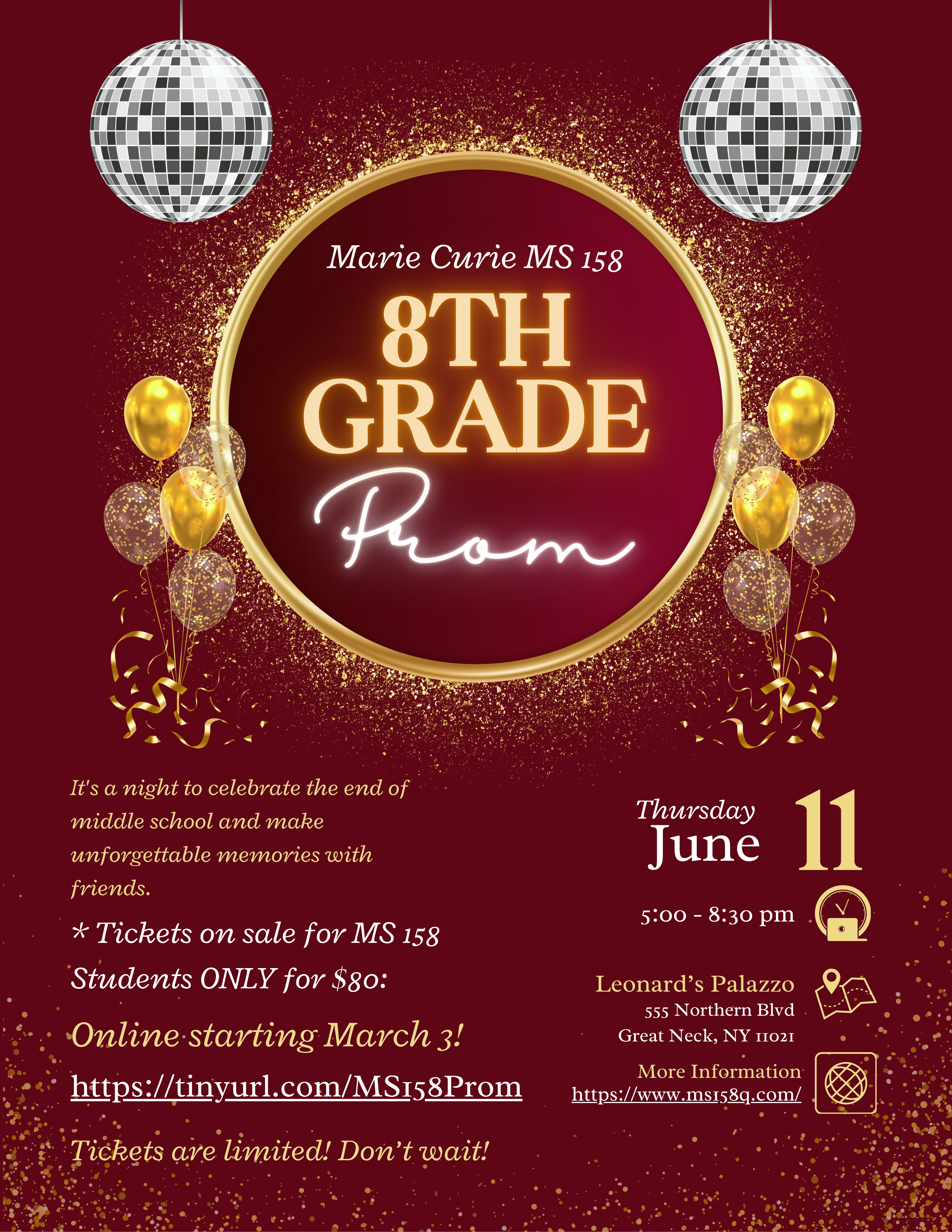8th grade prom tickets are on sale March 3rd
